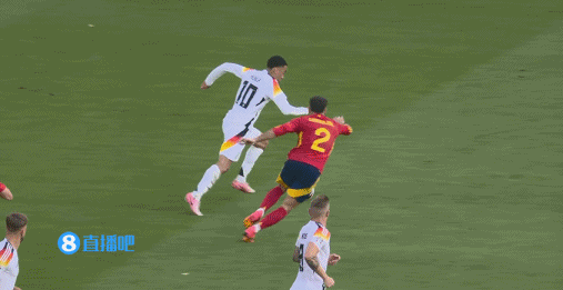 直播吧7月6日讯 北京时间0:00,欧洲杯1/4决赛首场较量,西班牙vs德国。克罗斯放倒佩德里,佩德里7分钟伤退;吕迪格、勒诺尔芒染黄,若晋级将停赛。下半场,奥尔莫破门;维尔茨89分钟绝平,双方进入加时赛。