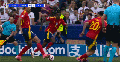 第34分钟,亚马尔禁区内连续晃动尝试过人,可惜球被断掉