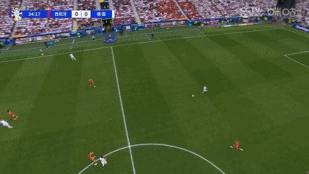 第39分钟,西班牙前场反抢成功,奥尔莫远射被诺伊尔扑出