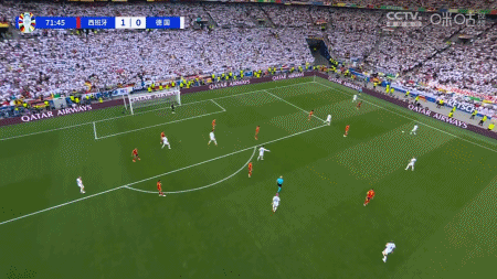 全场补时阶段,德国队右路起球,穆勒鬼魅跑位风采不减当年!前点抢射稍稍偏出!看回放似乎稍稍越位↓