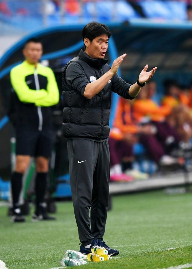 11月2日,沧州雄狮队主教练李霄鹏在比赛中鼓励球员。新华社记者 李紫恒 摄