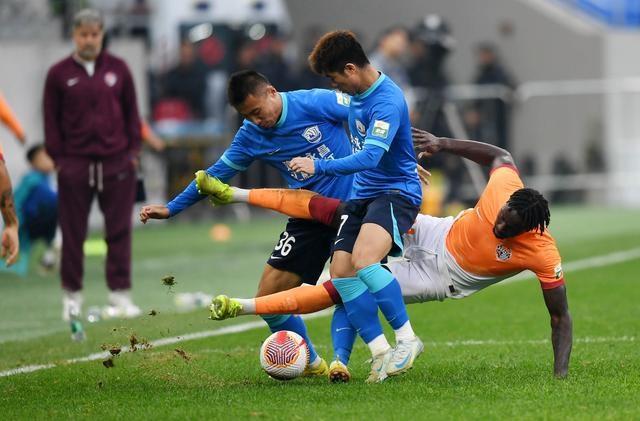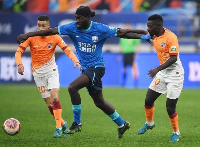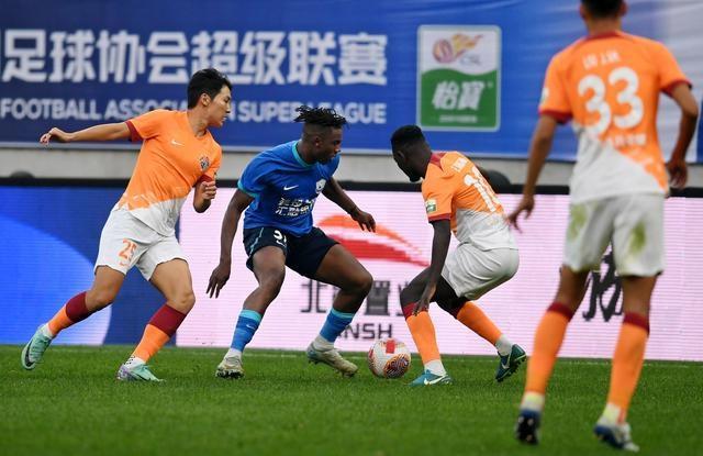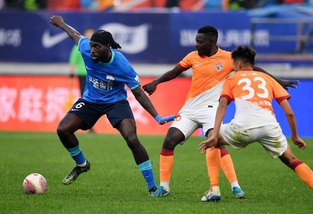 11月2日,青岛海牛队球员博阿基耶(右一)在比赛中控球。新华社记者 李紫恒 摄