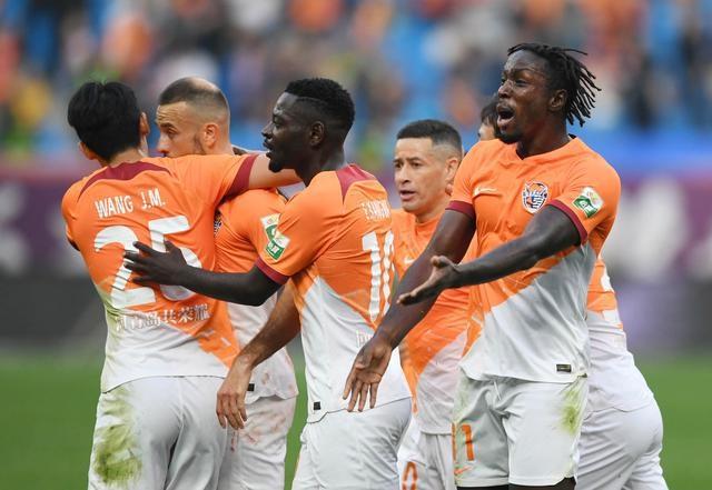 11月2日,青岛海牛队球员在比赛中庆祝进球。新华社记者 李紫恒 摄