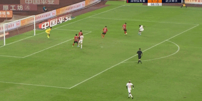 第17分钟深圳队输送长传球,塞尔纳斯门前抢到落点甩头攻门,将皮球稍稍顶高。