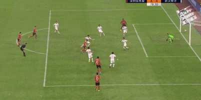 第46分钟,深圳队在下半时展开的第一次进攻,普雷西亚多将皮球输送到禁区内,马里迎球抽射便洞穿了对手球门,深圳在下半时闪电战破门,将比分追成1-3。