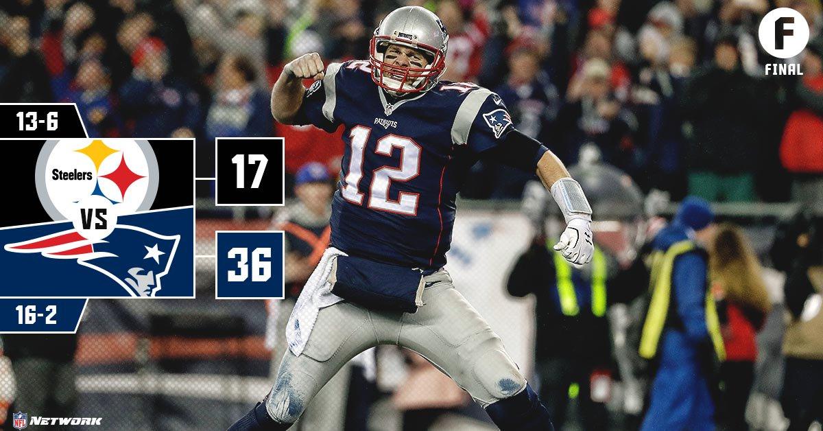 随着钢人赌博踢失败,全场比赛随即结束。最终新英格兰爱国者主场36:17轻取匹兹堡钢人,与亚特兰大猎鹰会师超级碗。这是汤姆-布雷迪职业生涯第七次打入超级碗。