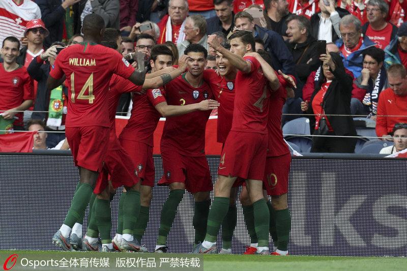 全场比赛结束,葡萄牙3-1战胜瑞士。