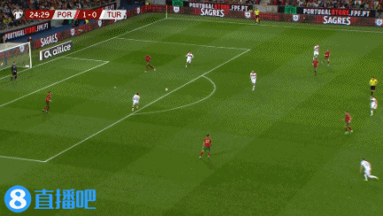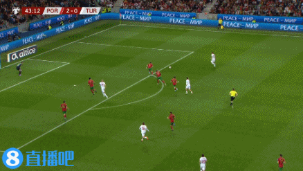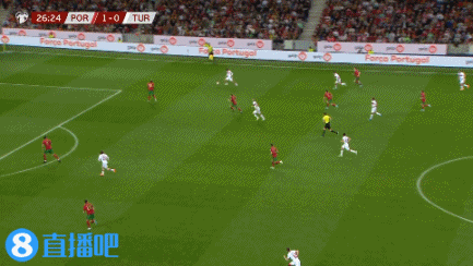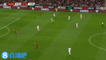 上半场补时2分钟,葡萄牙2-0土耳其。