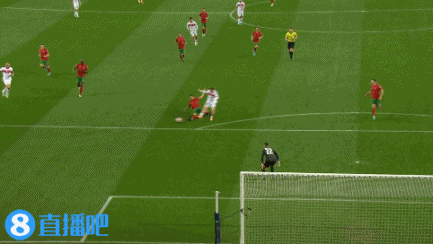 第9分钟,达洛特右路低平球传到禁区内c罗顺势转身打门打高了。↓