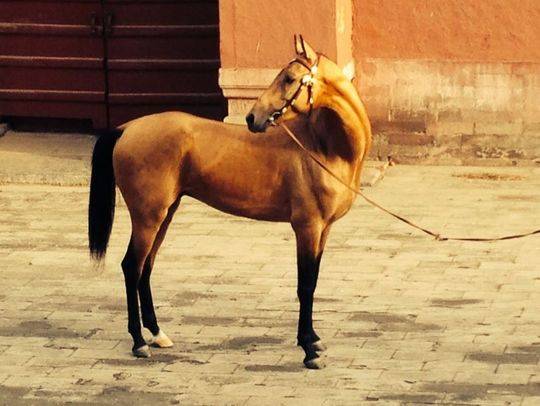 这匹国礼马为稀有的金色汗血马,毛如绸缎,阳光下全身一层金色。在专家看来,它身体恰当,头颅清秀,脖颈很长,身体姿态优雅而且协调性和平衡性好。