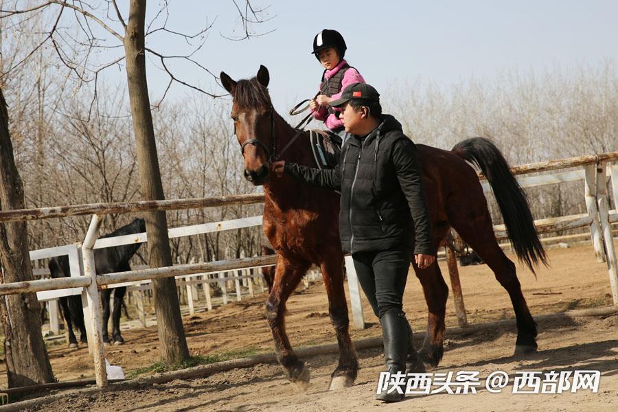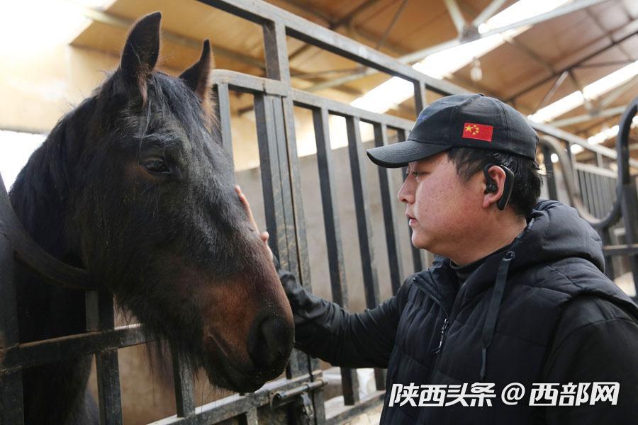 西部网讯(记者 魏永贤)西安南郊杜陵汉唐马术俱乐部,90后杜坤峰已做了9年马术教练,对马场的每一匹马都了如指掌。杜坤峰说:“这匹马是一个温血驹子,今年已经3岁了,它当时出生的时候是我接生的,这匹马多用于盛装舞步表演。”