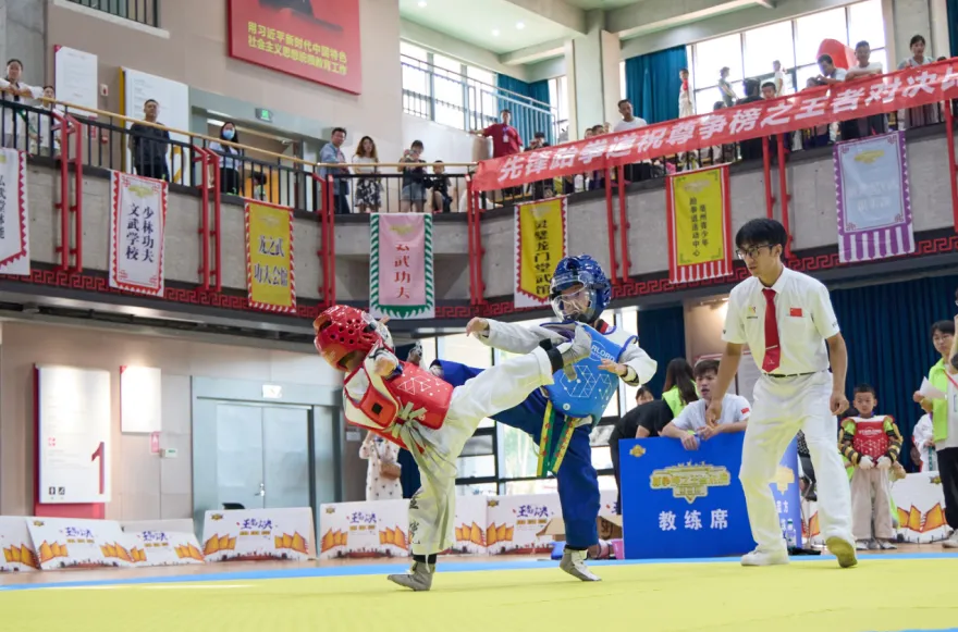 赛场上,沪台两地小选手全力以赴、顽强拼搏,展现了扎实的技术功底。他们善用各种腿法技能进行格斗和对抗,前踢、后踢、横踢或旋踢,动作刚劲有力,一招一式虎虎生风。教练们则在场外时刻紧盯,实时变换战略,看台上不时传来阵阵掌声。
