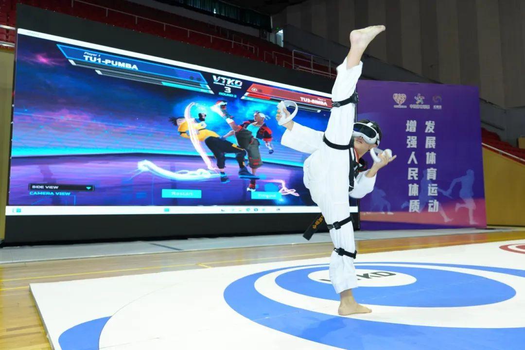 记者看到,在充满未来感的赛场上,两名选手佩戴专业的VR设备,通过精准的操作和敏捷的反应,在虚拟世界中展开激烈对决。这种创新尝试,不仅为跆拳道运动员注入了新活力,也给现场观众带来了全新的观赛体验。