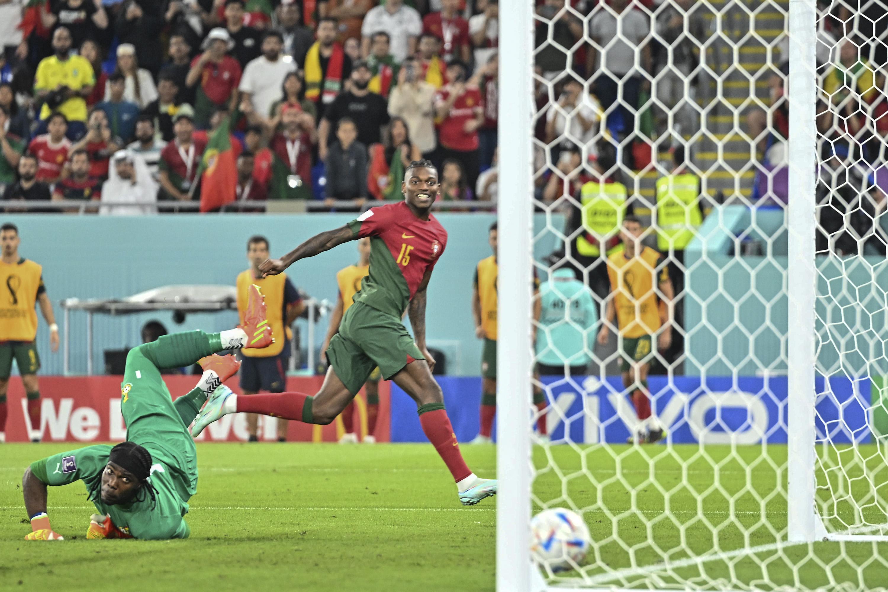 第78分钟,菲利克斯接布鲁诺·费尔南德斯(B费)精准的直塞助攻,单刀面对加纳队门将阿蒂·齐吉冷静推射破门,为葡萄牙队再度将比分超出。2分钟后,又是B费的助攻,这次获益的是23岁的年轻前锋莱昂,他在左路得球后推远角得手,将比分改写为3:1。