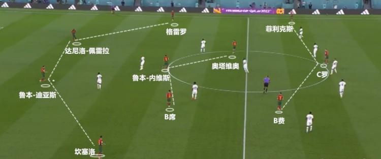 从葡萄牙队首发阵容能看出老帅桑托斯本届世界杯的用人是优先选择技术流球员——B席、B费这样“半前锋”、“半中场”属性的球员能保证球队攻守两端的均衡,奥塔维奥则能在中场提供更多跑动与对抗,而后腰鲁本-内维斯也是防守与技术兼具的球员。这样的首发阵容,虽然不是葡萄牙进攻最强的,但却是最均衡和稳妥的。