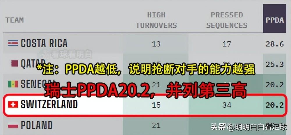 这届世界杯拼抢最凶的墨西哥,PPDA都有9.3啊,可见瑞士人有多努力。
