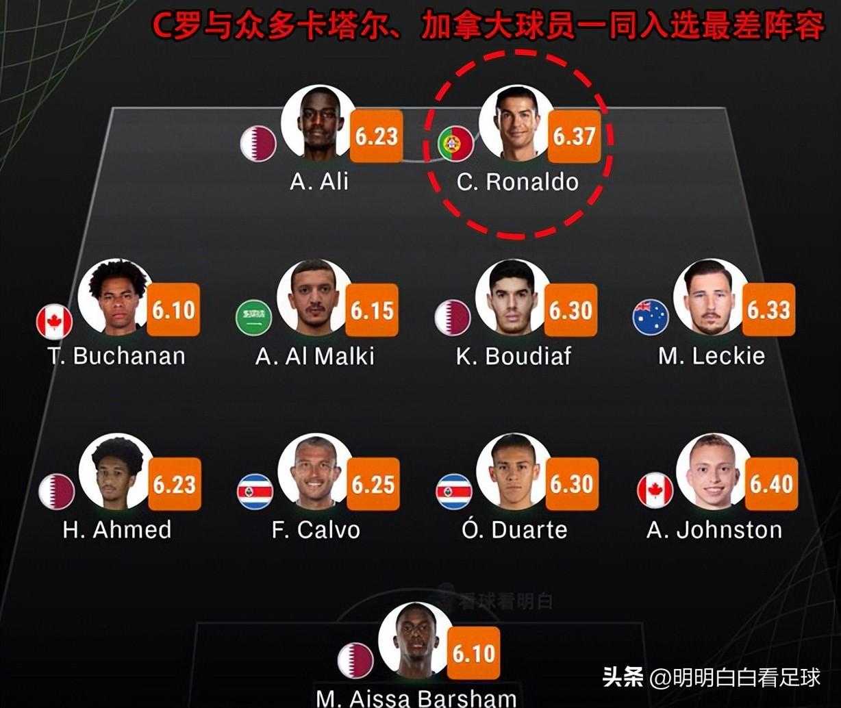在上一场送出乌龙助攻后,C罗被选入了本届世界杯的最差阵容。