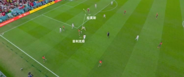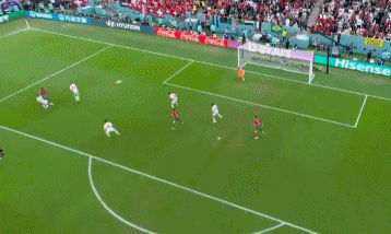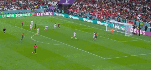 葡萄牙队的第一粒进球,正是菲利克斯左路拿球吸引防守后在肋部区域以一脚精准的直塞打开进攻空间,助攻贡萨洛-拉莫斯打入个人世界杯首粒进球。当然,贡萨洛-拉莫斯的射门也非常精彩,抗住包夹的沙尔用左脚爆射,球速快且角度刁钻,让门将毫无办法。