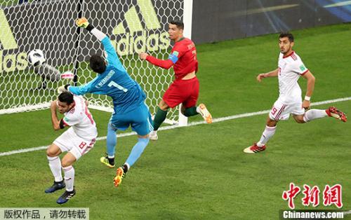 中新网6月26日电 北京时间6月26日凌晨,2018俄罗斯世界杯B组葡萄牙与伊朗的“生死战”在萨兰斯克竞技场打响。最终,由C罗领衔的葡萄牙1:1战平亚洲劲旅伊朗队,同组另外一场同时进行的比赛中,西班牙2:2战平摩洛哥。葡萄牙以小组第二的身份晋级世界杯十六强,他们将与乌拉圭队在1/8决赛中相遇。本场比赛,34岁老将夸雷斯马首发堪称奇兵,在上半场比赛的最后关头打入进球。C罗罚丢了由自己创造的点球,未能延续本届杯赛每场都有进球的良好状态。