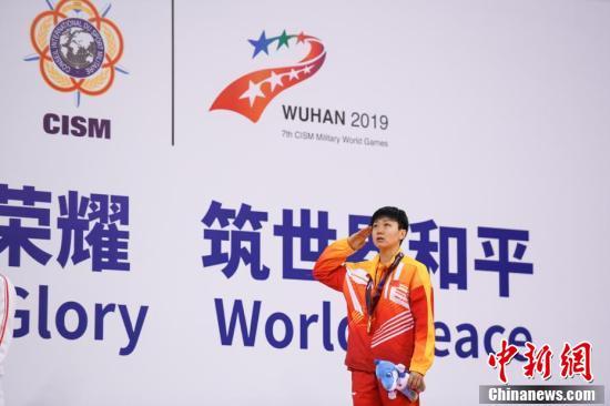 10月26日晚,在湖北省武汉市进行的第七届世界军人运动会乒乓球女子单打决赛中,中国八一队选手木子以4比2战胜朝鲜选手金宋依夺得冠军。图为木子庆祝比赛夺冠。