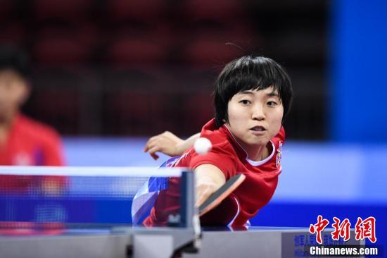 图为朝鲜选手金宋依在比赛中。