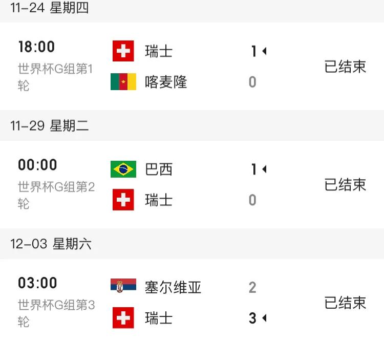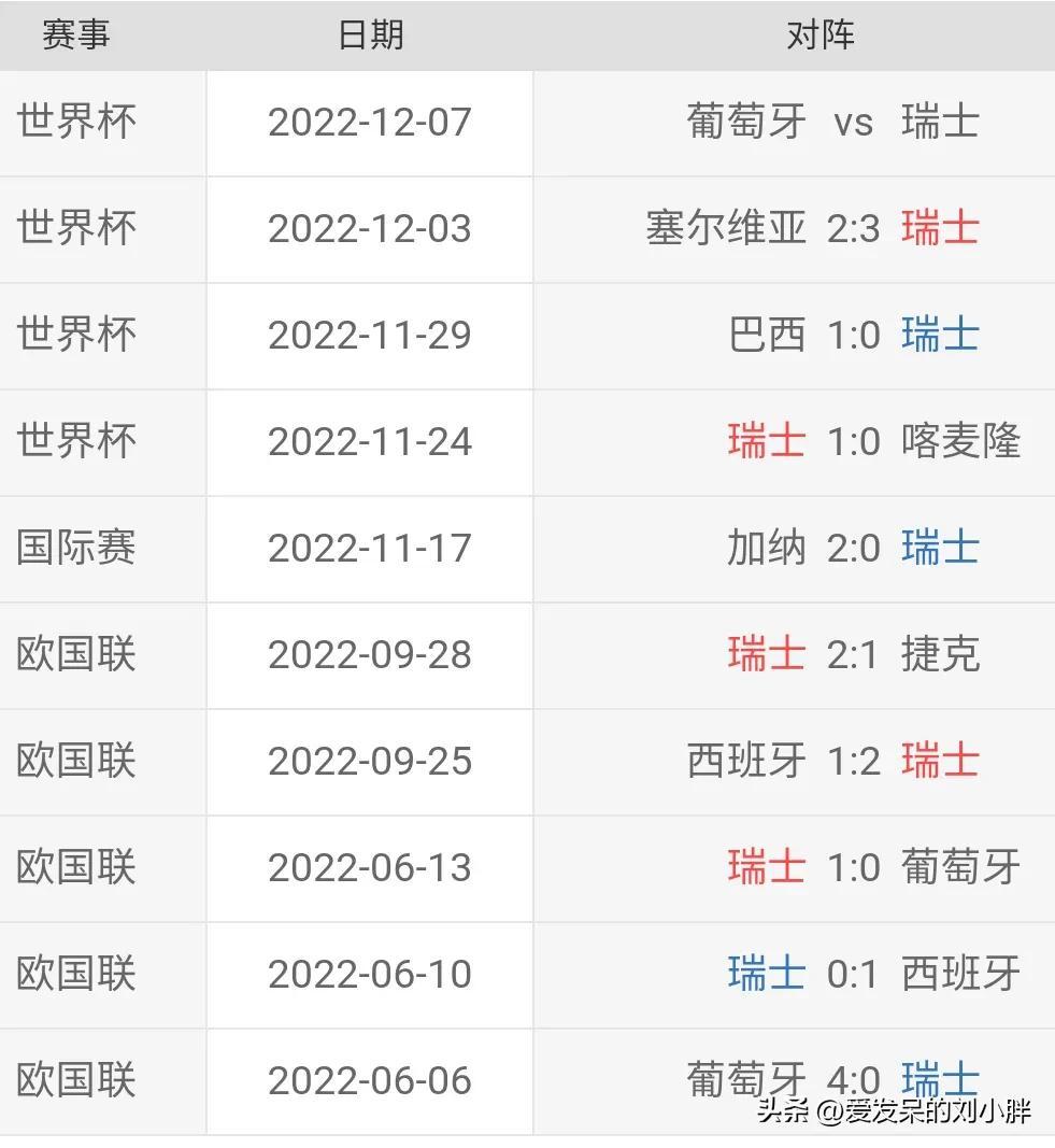 瑞士队近9场比赛战绩
