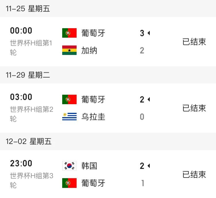 葡萄牙队近9场比赛战绩