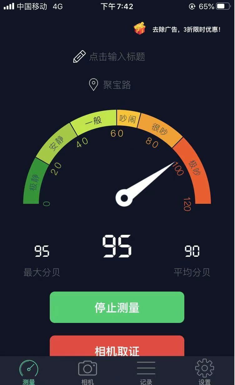 3月23日晚上7点多,记者刚到聚财路与聚宝支路交叉路口,隔着华润超市还有十几米远,就听见“咚咚咚呲”的高频节奏声。走近了,只见路边四五对中年男女正跟着乐音鼓点跳快节奏交谊舞,一台半米多高的音响支在路边。记者距离七八米,用手机分贝仪测了30多秒,平均分贝为90。