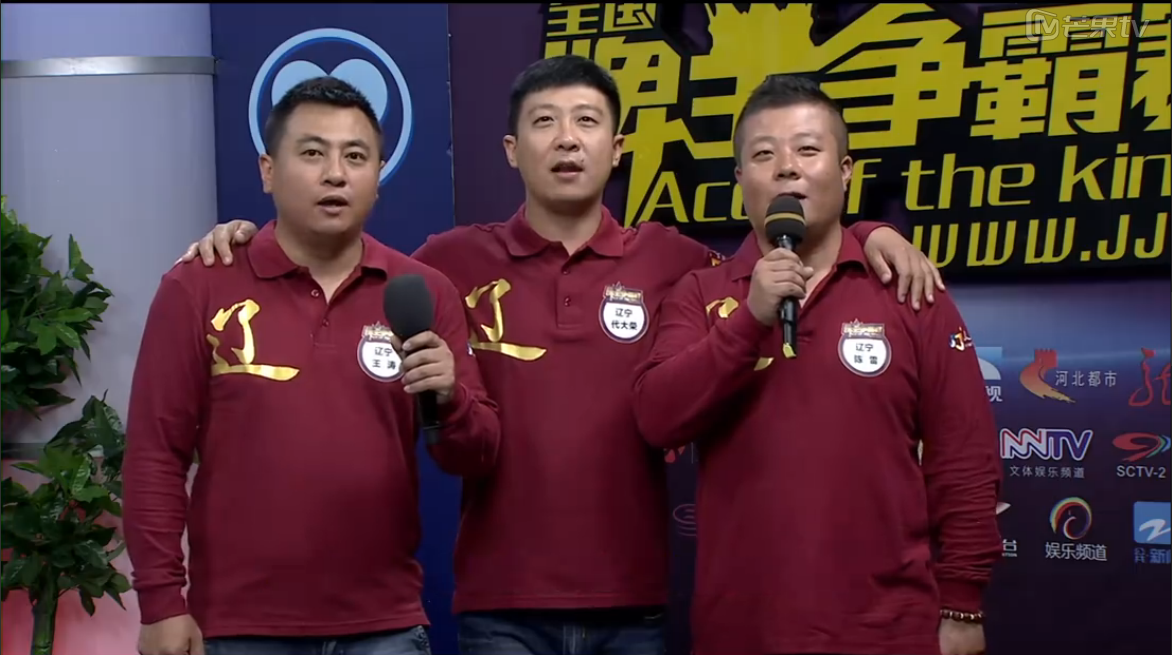 每一站参加比赛的人数是三人,我们这站有抚顺的代大荣和沈阳的陈雷。看见他们俩时,就觉得从他们眼中看到了智慧的光芒,一看就感觉是斗地主的好手。我们在比赛之前的晚上做了很多的交流,包括这次全国牌王争霸赛的牌型和叫分经验,毕竟我们是第三站,前面两站的选手给我们积攒了很多的经验。并且通过跟大荣聊天的时候才知道智慧斗士还开办一台智慧斗士大师赛的节目,在每天晚上的九点半左右播出,代大荣就是那里面的选手,代大师。