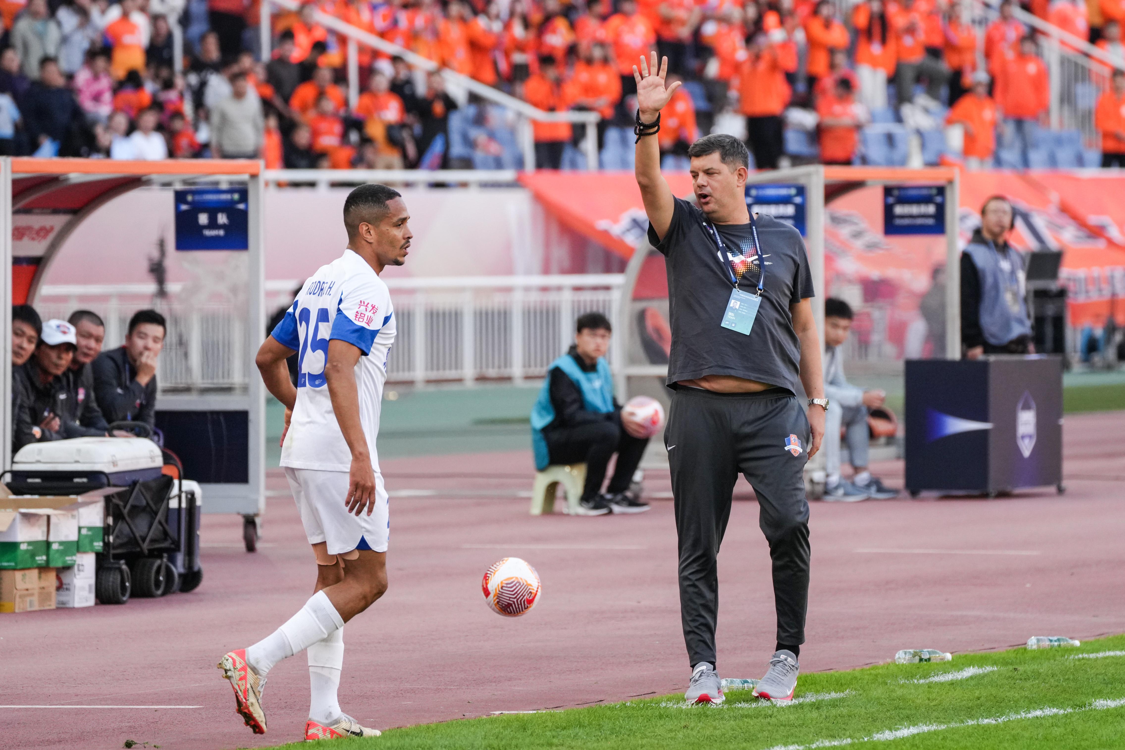 11月2日,梅州客家队主教练米兰(右)在比赛中。 新华社记者 朱峥 摄