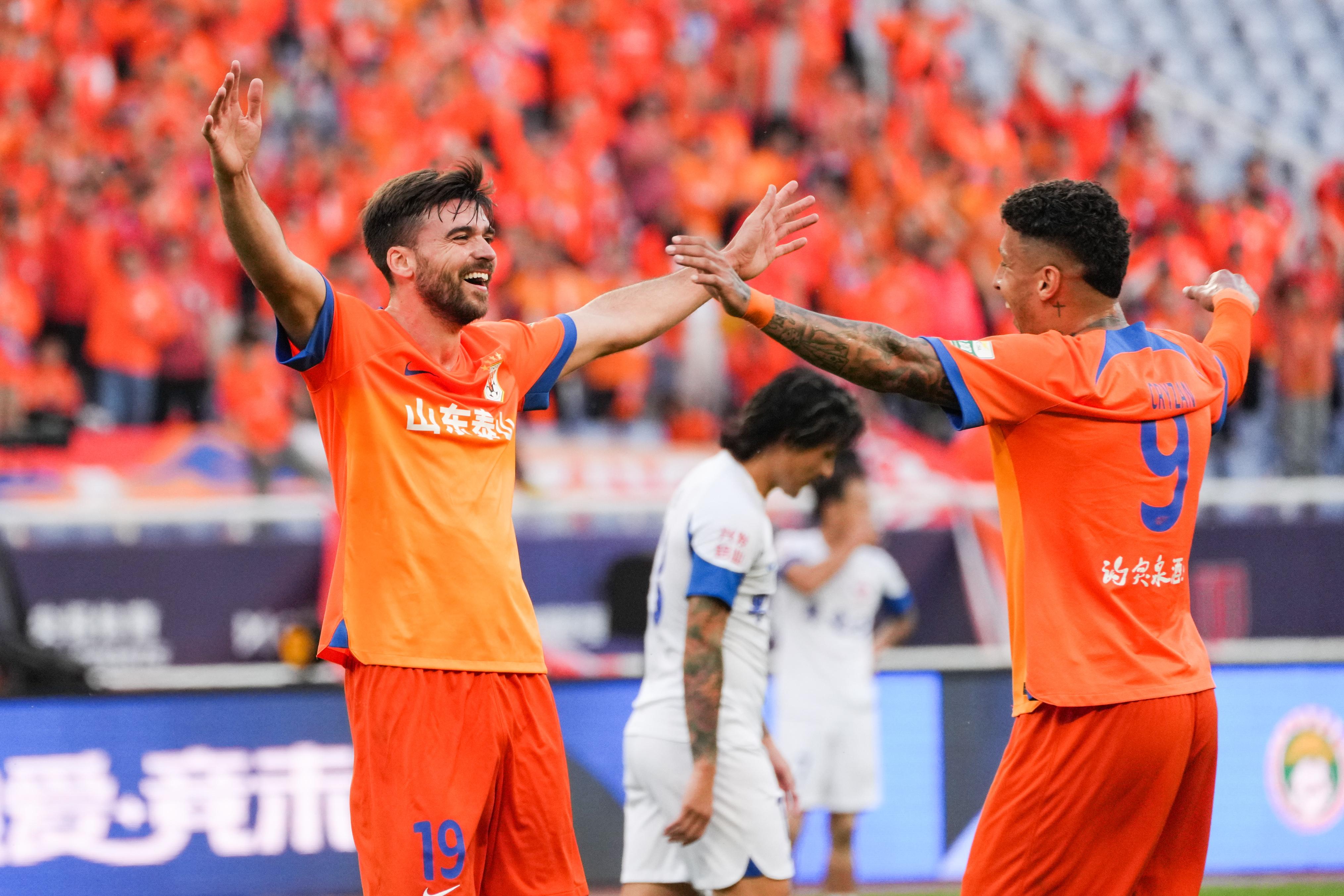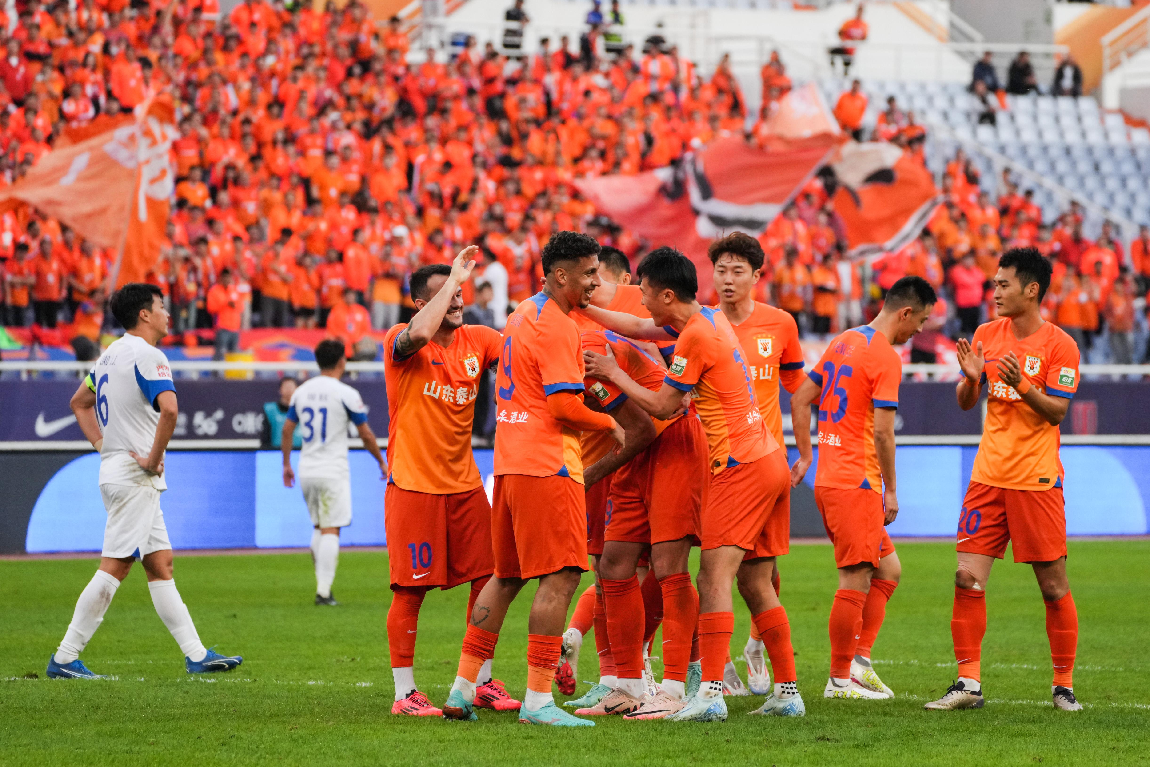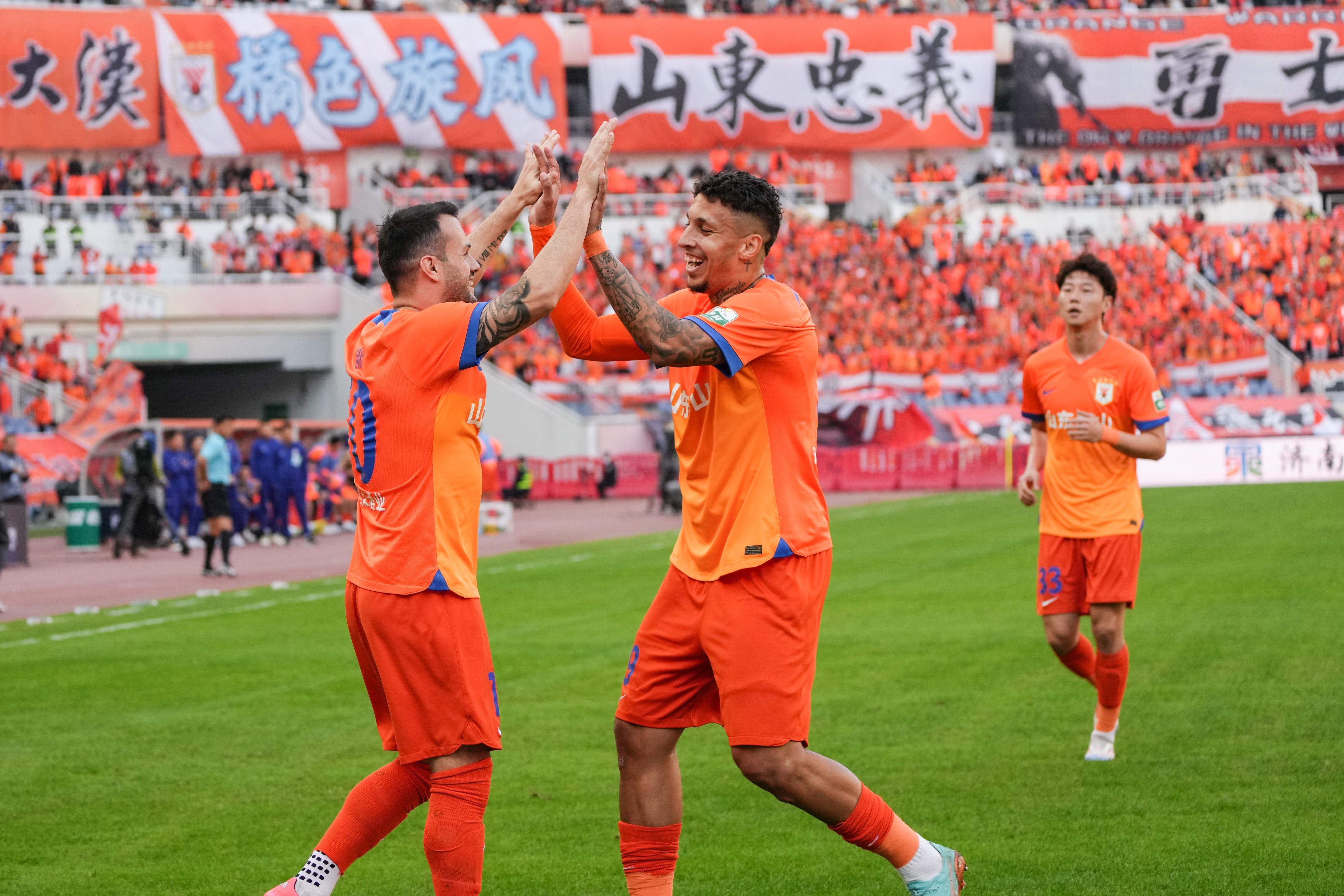 11月2日,山东泰山队球员庆祝进球。 新华社记者 朱峥 摄