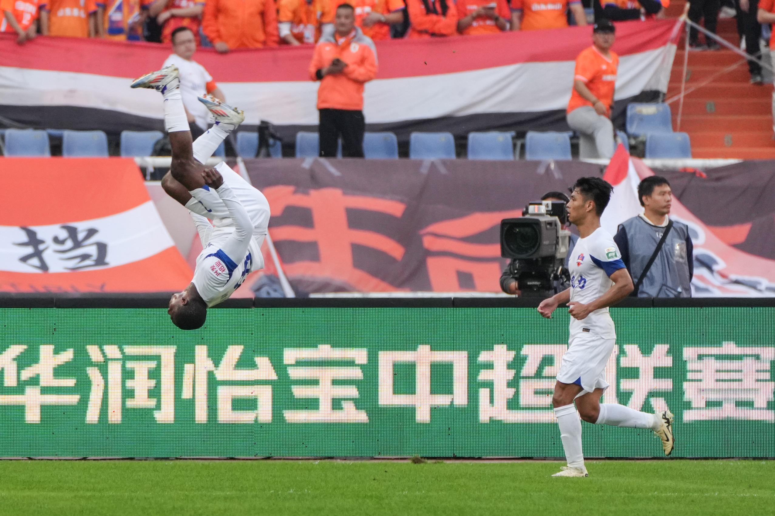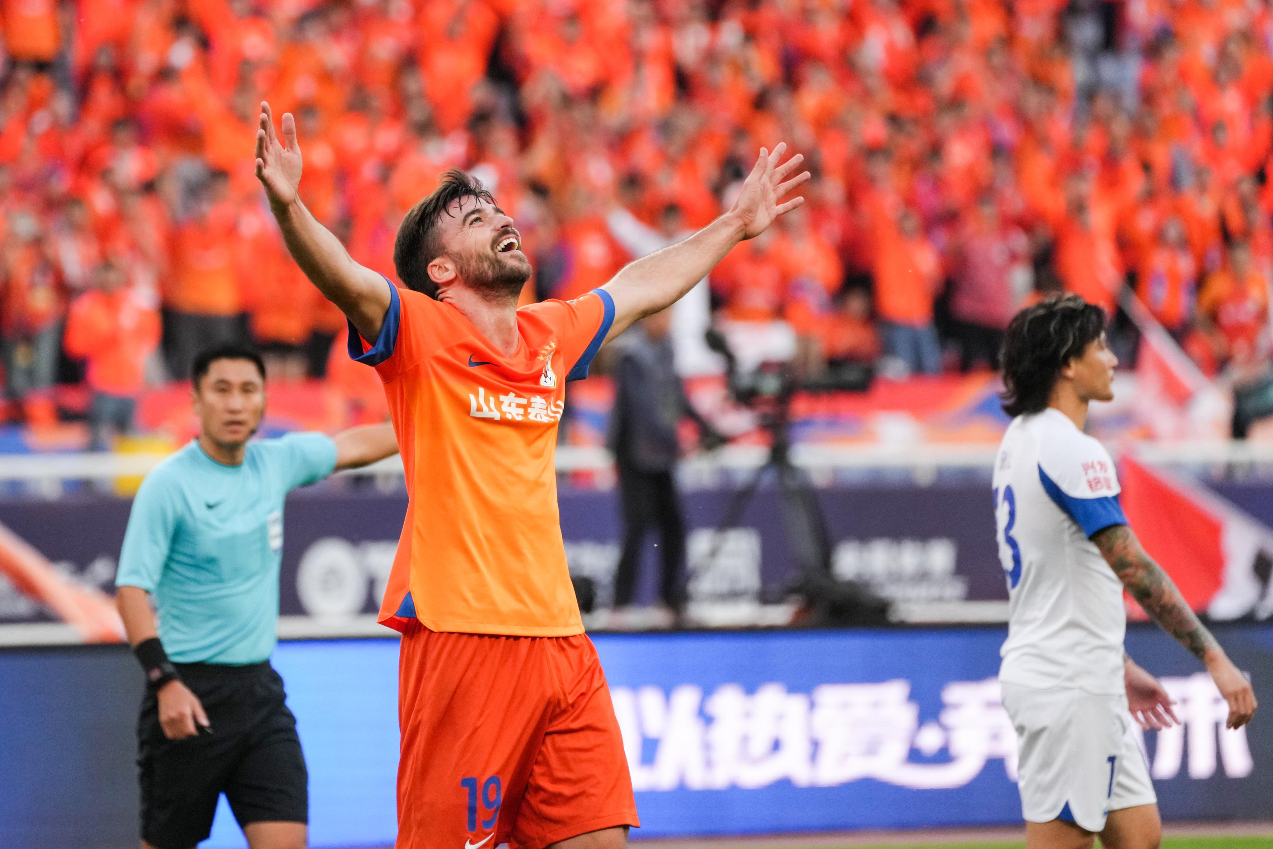 11月2日,山东泰山队球员泽卡庆祝进球。 新华社记者 朱峥 摄