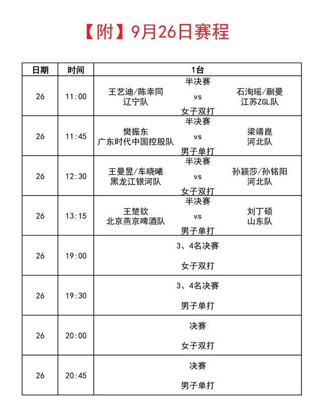 9月26日赛程: