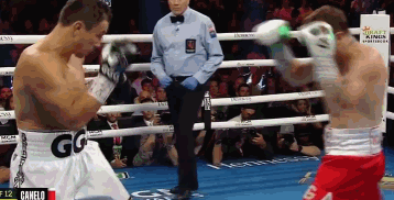 第十回合,双方的距离控制得很好,阿尔瓦雷斯上勾拳击中戈洛夫金的下巴,他也多次尝试击腹。戈洛夫金的战术是消耗和磨时间,近距离之后就贴身,他的闪躲技术还是很好的。