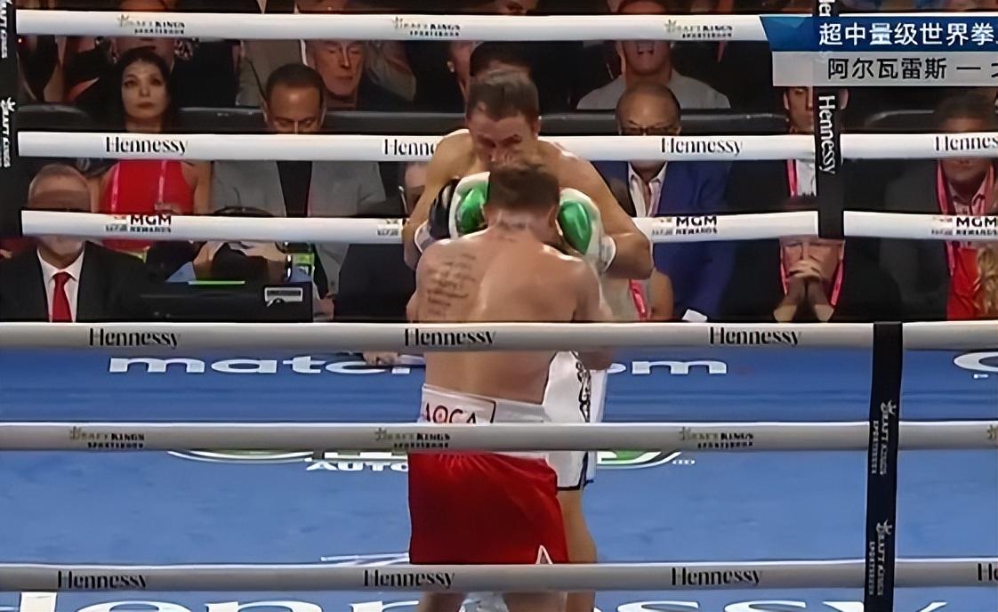 第一回合,双方都比较保守,更多的还是试探的过程。第二回合双方都加速了进攻节奏,阿尔瓦雷斯打得很主动,点面部之后总是能够形成有效击打。戈洛夫金也打得不错,尤其躲闪跟以前完全不一样,不过对手占据优势。