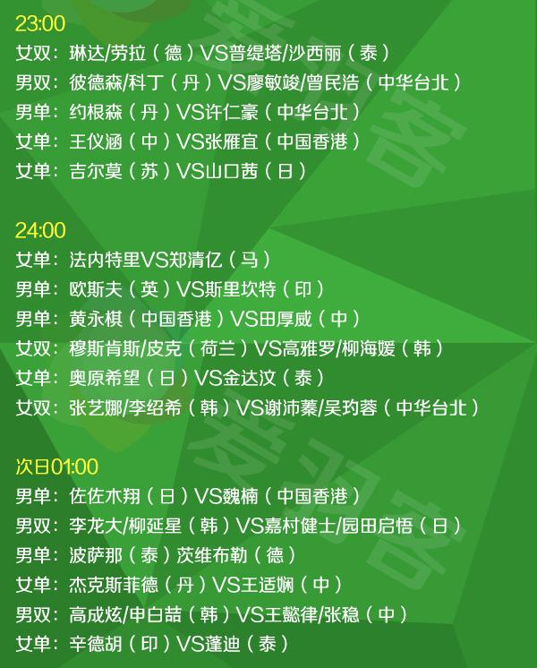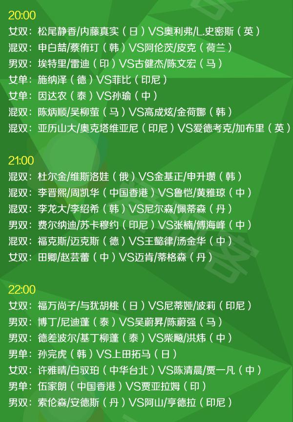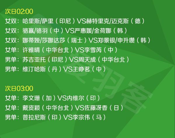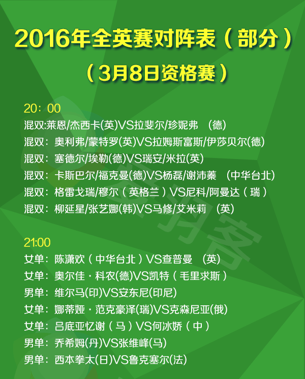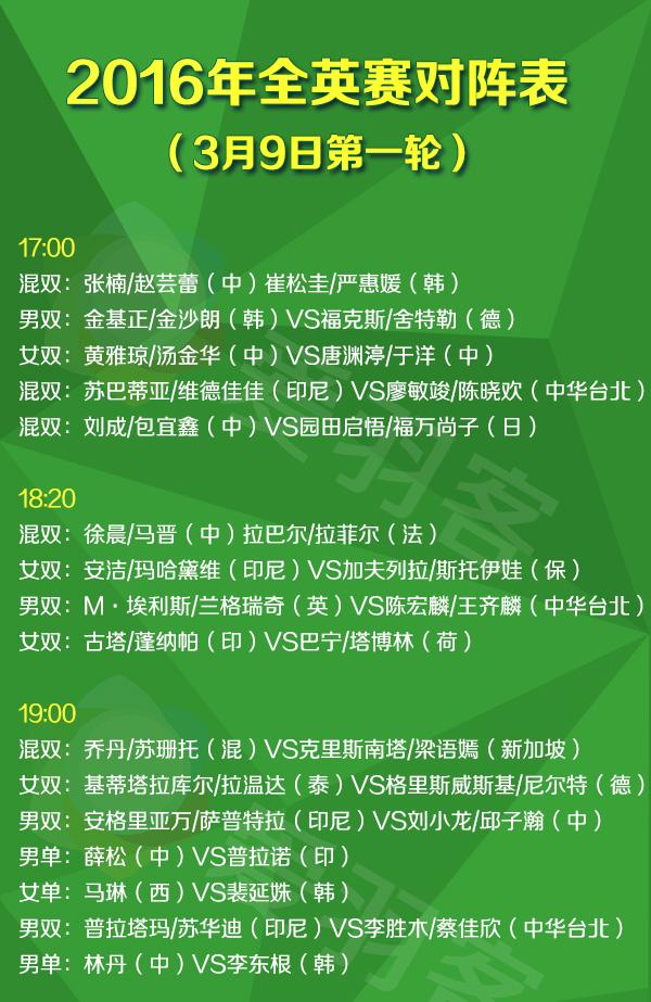 2016年全英羽毛球公开赛直播安排(北京时间):