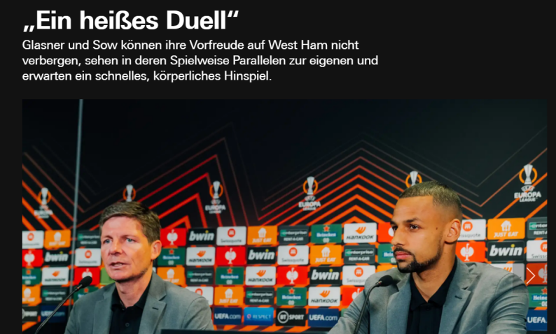 法兰克福主教练格拉斯纳表示,西汉姆联的定位球非常有威胁,所以球队不会在比赛中给对手太多的定位球机会。