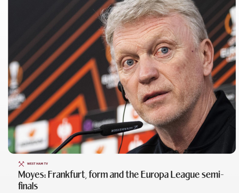西汉姆联主教练莫耶斯在谈到本场比赛时表示,球队的主场作战能力非常强,曾经击败过热刺、切尔西以及利物浦。所以本场比赛他们会全力以赴,击败法兰克福。