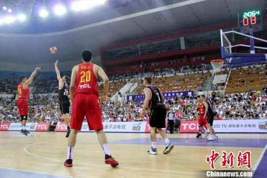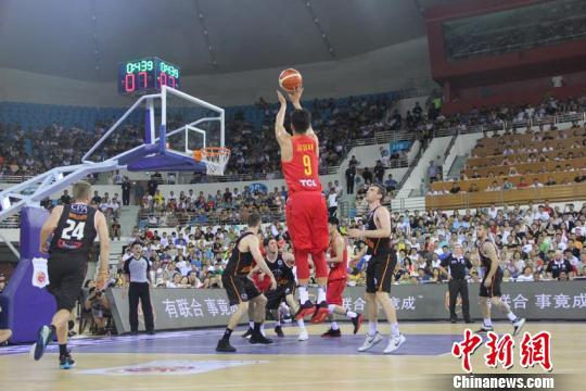 中新网吉林7月7日电 (记者 苍雁)2017年中澳国际男篮对抗赛第二场比赛7日晚在吉林省吉林市进行。主教练杜锋率领的中国男篮蓝队以89-75大胜澳大利亚联队。