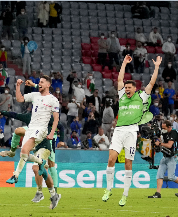 【环球网报道 记者 索炎琦】欧洲杯首场半决赛于北京时间7日凌晨3时开打,老对手意大利和西班牙在伦敦温布利球场展开争夺,两队在常规时间和加时赛内战成1:1,最后意大利以点球大战比分4:2、总比分5:3击败西班牙,赢得本届欧洲杯首张决赛门票。值得注意的是,本场比赛前,双方队员跟唱国歌的巨大差异表现,引得网友广泛关注。