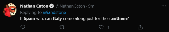 “如果西班牙赢了,意大利能一块去(决赛)吗?就是为了他们的国歌”
