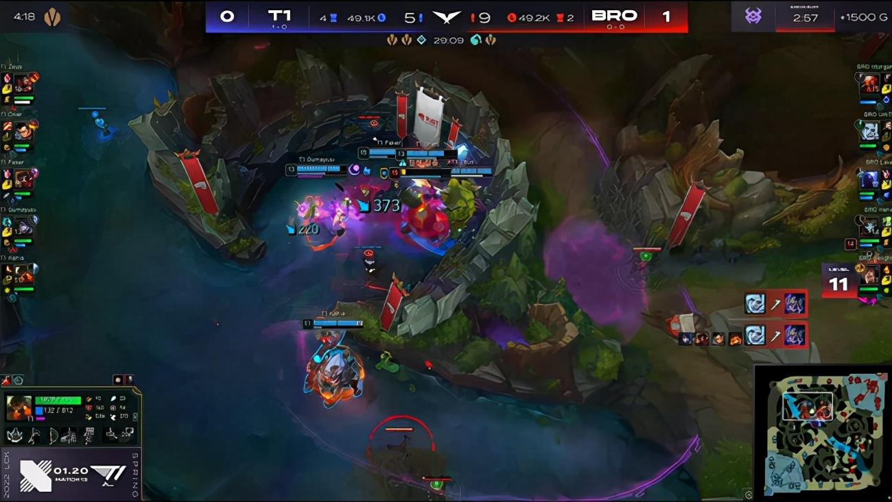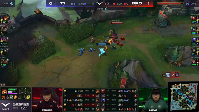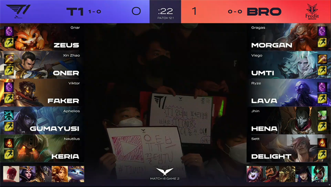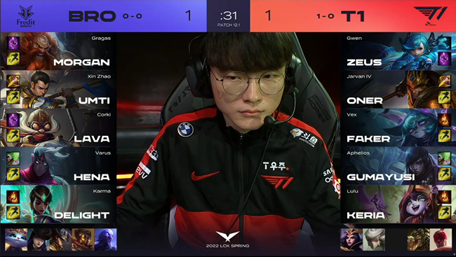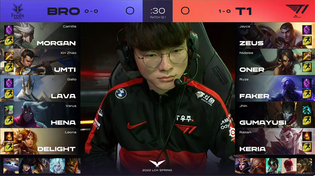 2022 LCK春季赛常规赛第一周的比赛进行到第三天,T1战队迎战BRO战队。面对直面实力弱于自己的对手,T1意外地与BRO陷入了苦战,在首局失利的情况下第二局拉扯许久艰难取胜,最终在第三局里找回了状态,让一追二2-1击败了BRO。