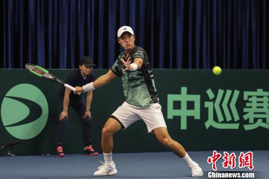 图为中国选手张之臻在比赛中。 瞿宏伦 摄