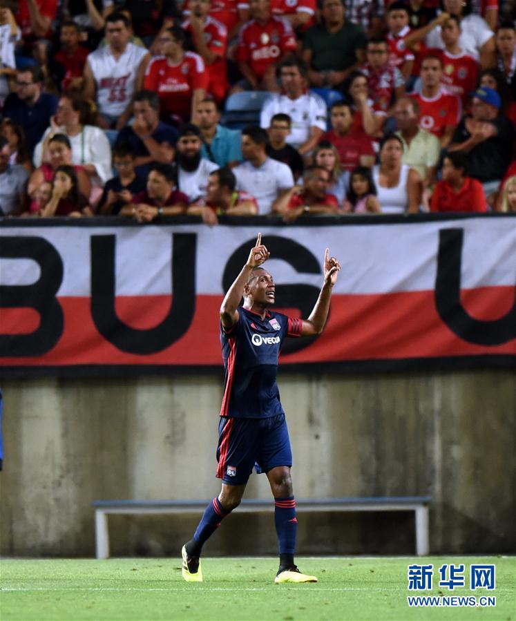 ↑8月1日,里昂队球员马塞洛在比赛中庆祝进球。 新华社/法新