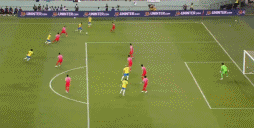 第56分钟,内马尔在前场控球,孙准浩对他犯规,送给巴西队一个任意球。拉菲尼亚主罚任意球左脚射门,皮球击中人墙后出了底线。