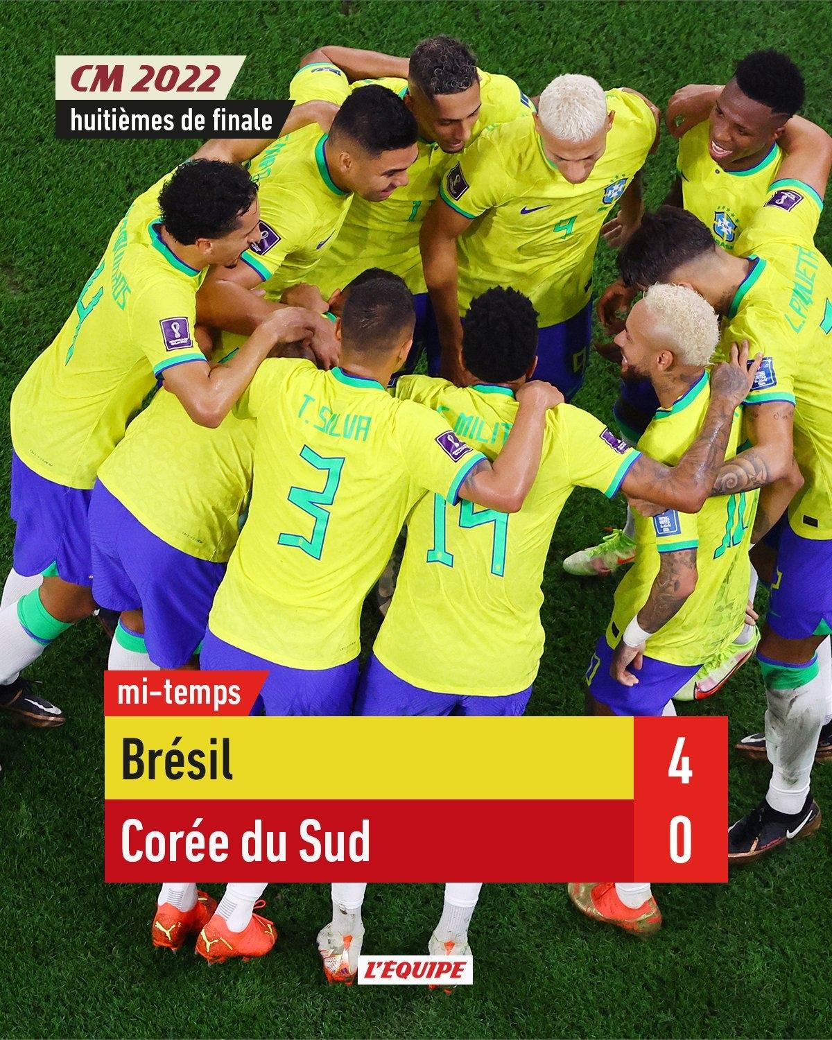 第71分钟,巴西队换人,布雷默换下达尼洛,马丁内利换下维尼修斯。第75分钟,黄喜灿开出前场右侧任意球,皮球吊入禁区被巴西后卫顶出,外围的白昇浩停球后左脚大力抽射破门,韩国队1-4巴西队。