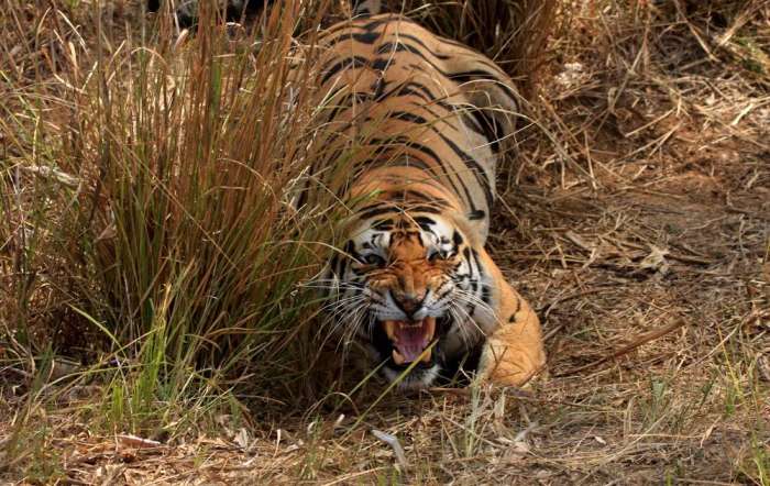 首先是生境因素。一是生境中要有那么多的野牛。一般来说,老虎总是优先选择生境中最多的有蹄动物。二是生境中要有适合老虎捕杀野牛的场地。在纳加尔霍雷,老虎很少在密林中袭击白肢野牛,在密林中发现的69个老虎的猎物,只有两个是野牛,这说明野牛确实是一种很危险的猎物;而水鹿、白斑鹿和野猪则多在密林中被老虎捕杀。