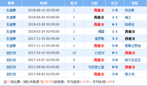 西班牙近期比赛战绩