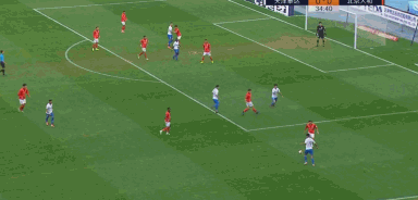 第80分钟人和输送威胁传中球,马努头球摆渡,这时门前包抄的迪奥古头槌攻门将皮球顶高。