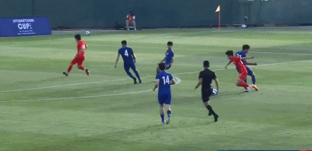 第5分钟,中国队获得前场任意球机会,蔡明民操刀直接打向对手球门,但没有包抄球员,直接被泰国队门将将球没收。